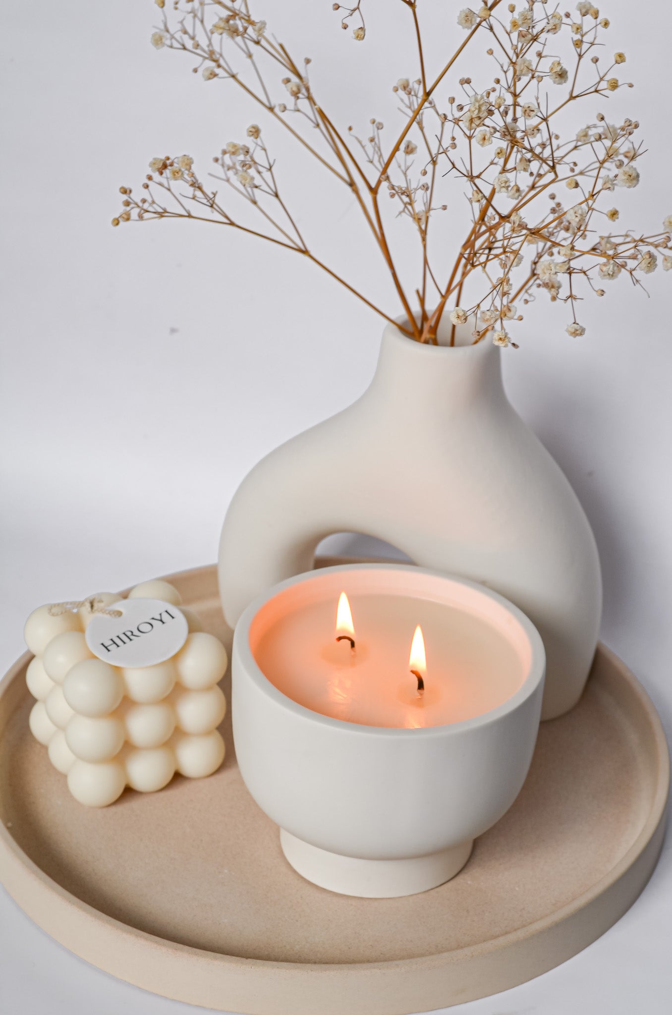 Served into a reusable linen bag, our cotton double wick candles are handmade into unique neutral off-white vessels. From the jar to the filling, each candle is entirely handmade in our studio and will take you on an olfactory journey for the ultimate moment of relaxation.