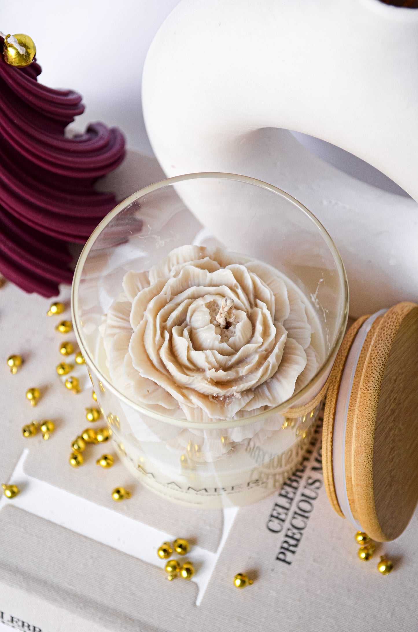 Served into a clear glass jar, our peony candles are hand made with a soothing and clean burning cotton wick. From the jar to the filling, each candle is entirely handmade in our studio and will take you on an olfactory journey for the ultimate moment of relaxation.