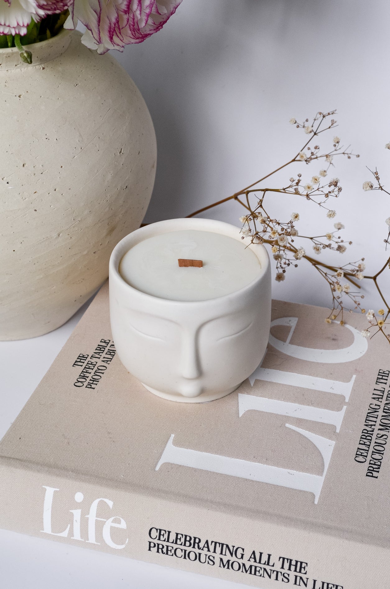Served into a reusable cotton bag, our wood wick candles are handmade into unique neutral off-white vessels. From the jar to the filling, each candle is entirely handmade in our studio and will take you on an olfactory journey for the ultimate moment of relaxation.