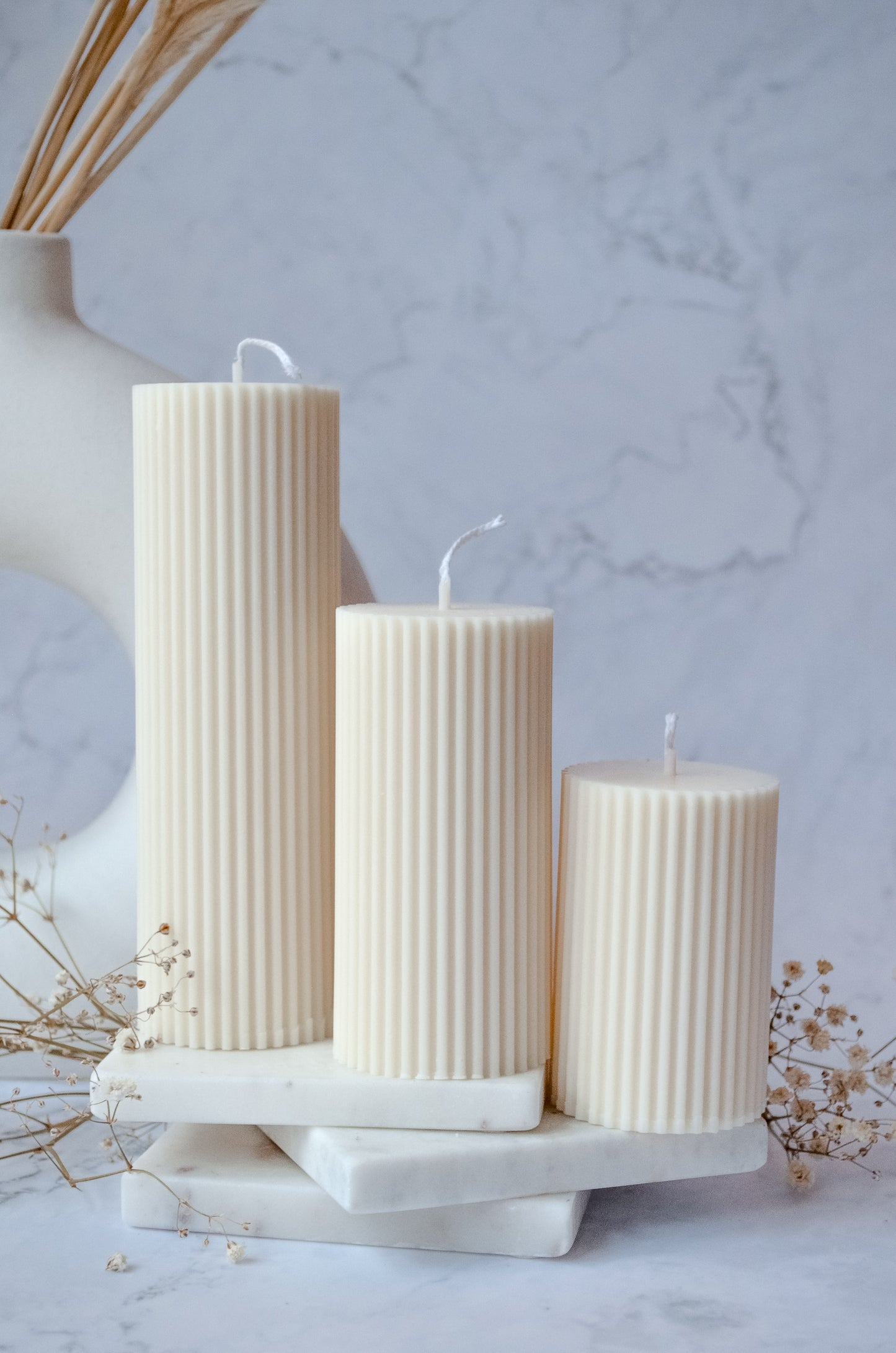 Ce trio de bougies pilier côtelées est haut et gracieux avec sa silhouette élancée et son design nervuré, ce qui en fait une pièce maîtresse pour n'importe quelle pièce. Fabriqué à partir de cire de soja 100 % non toxique, il ajoute non seulement de l'élégance à votre décor, mais améliore sans effort n'importe quel décor, qu'il s'agisse d'une pièce maîtresse de table à manger ou d'un accent de cheminée. Comme cadeau parfait, cette bougie sculpture symbolise la beauté, la tranquillité et une touche de magie.