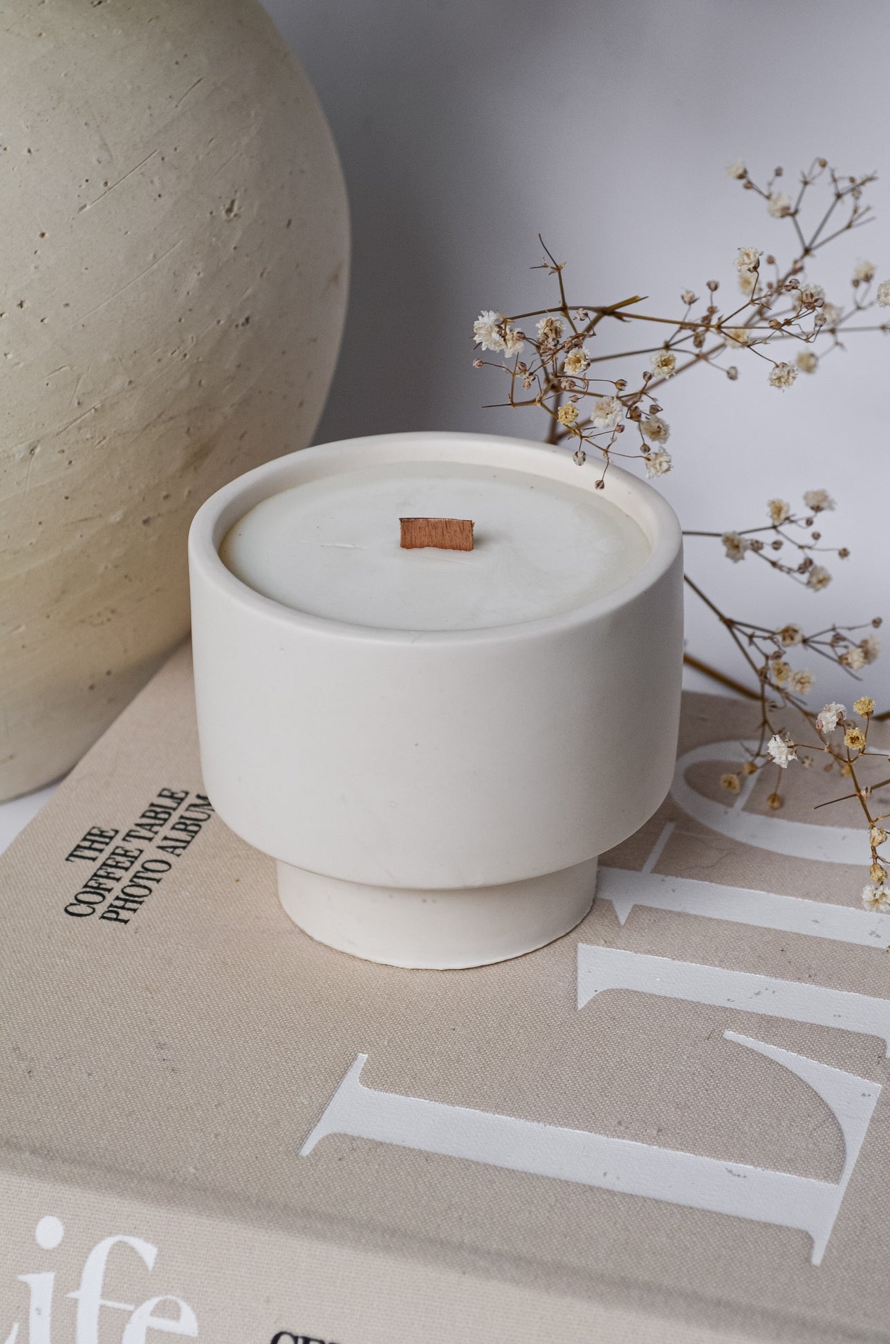 Served into a reusable cotton bag, our wood wick candles are handmade into unique neutral off-white vessels. From the jar to the filling, each candle is entirely handmade in our studio and will take you on an olfactory journey for the ultimate moment of relaxation.